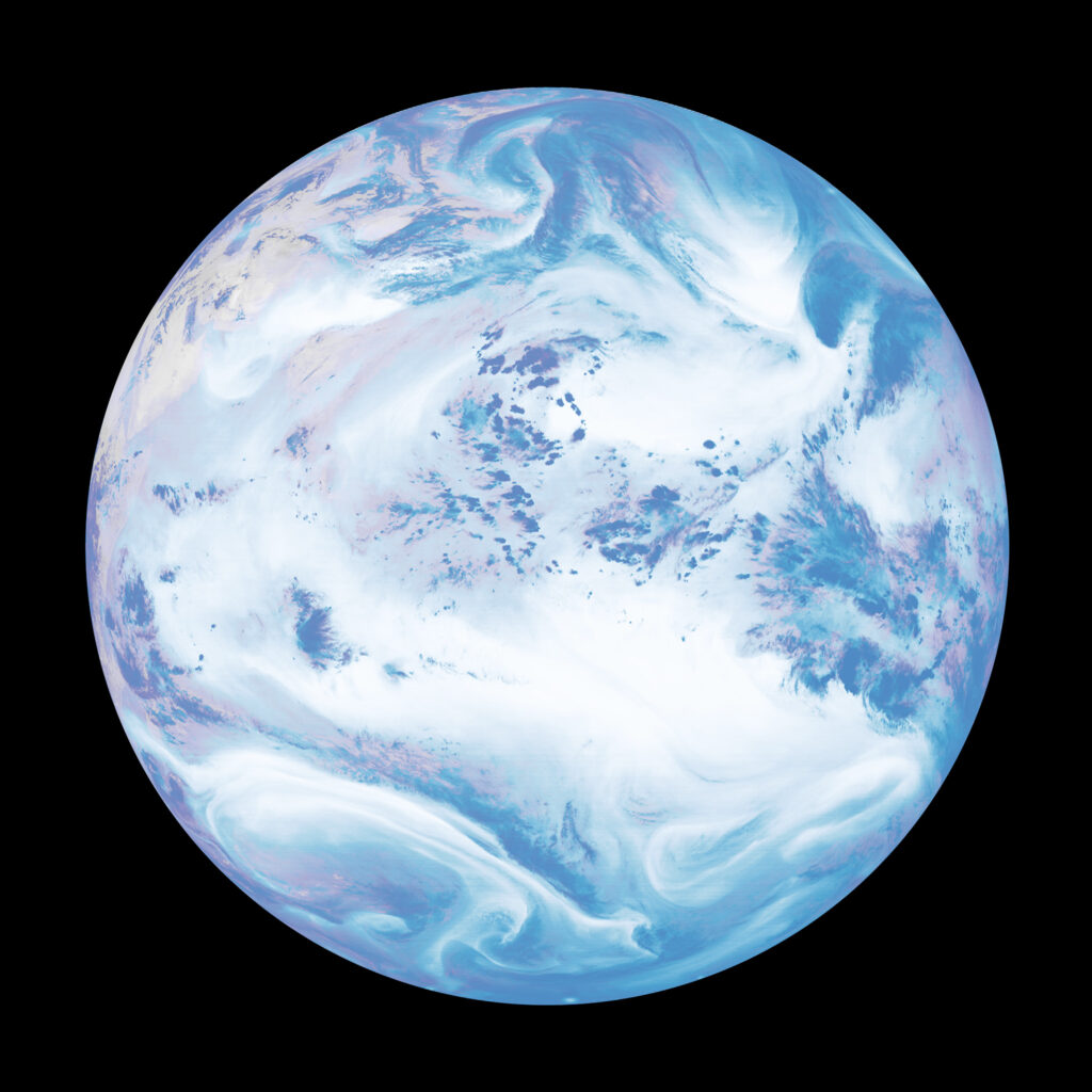 The water vapor and aerosols [airborne particles of dust, soot, mold, and bacteria] of Earth's third atmosphere-ocean environment are shown in this full-disk visualization centered above China. Image derived from FY-4A AGRI L1 satellite data set [Fēngyún-4 are China Meteorological Administration’s most recent geosynchronous meteorological satellites]. Image courtesy of Marco Ferrari [2021].