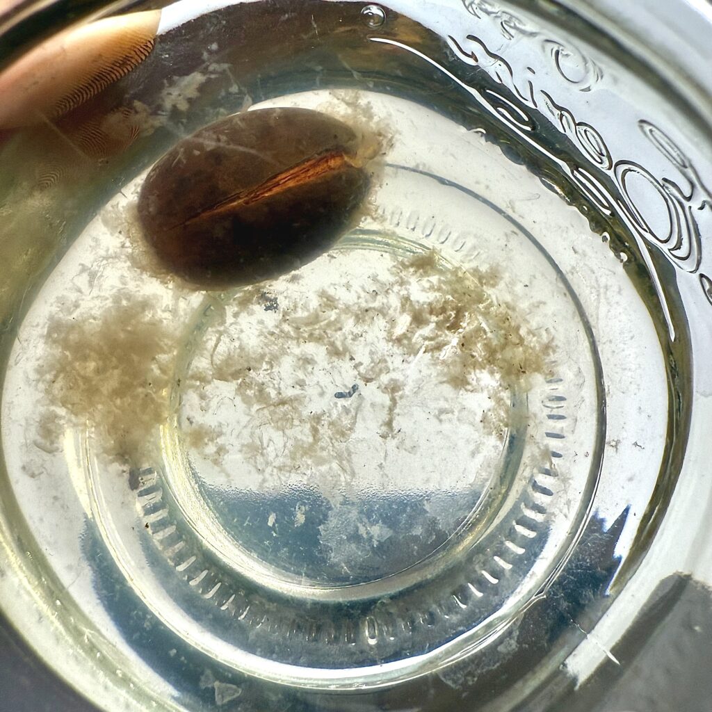 Water: fuzz and mold. As time went on, the fuzz on the acorn grew thicker, but the acorn did not die.