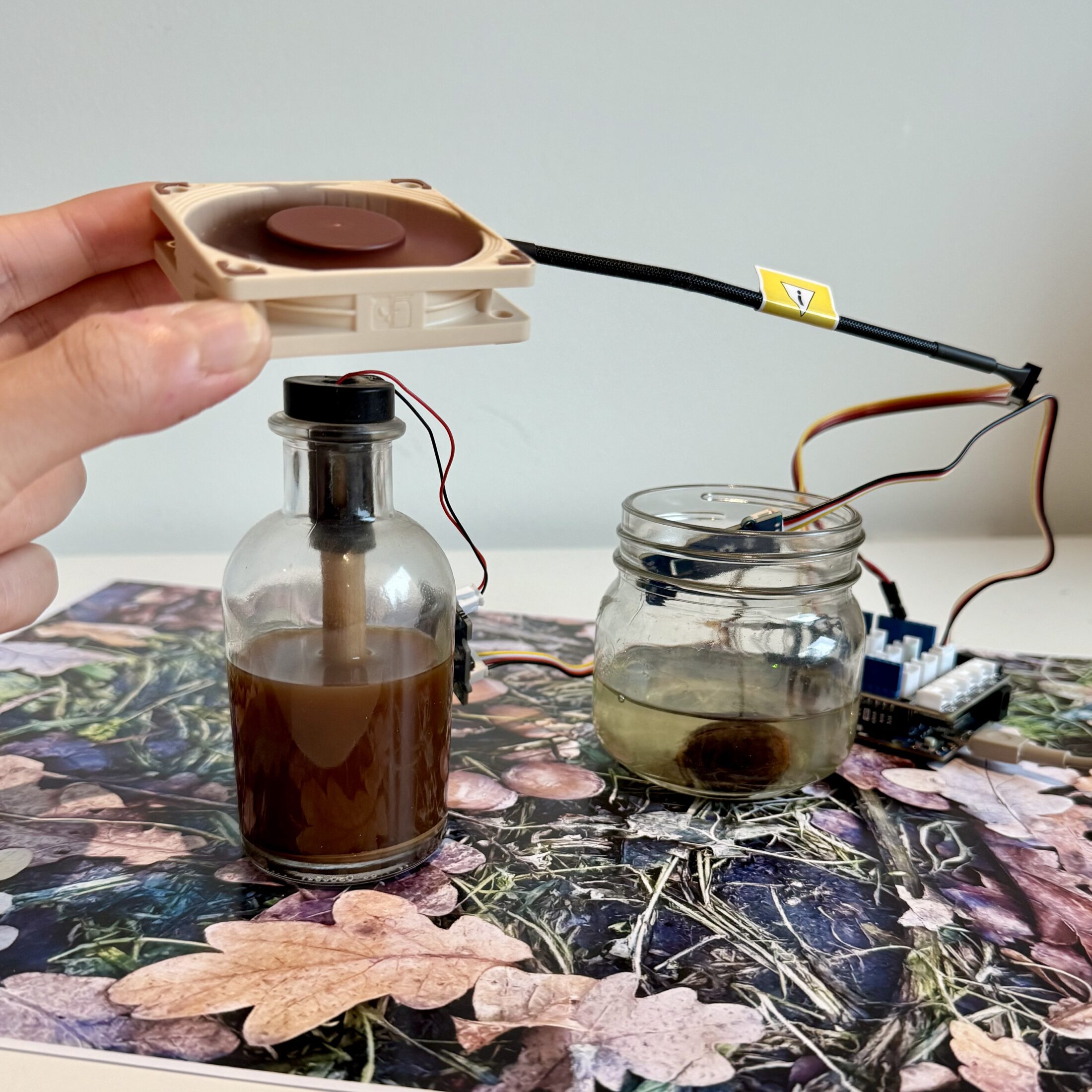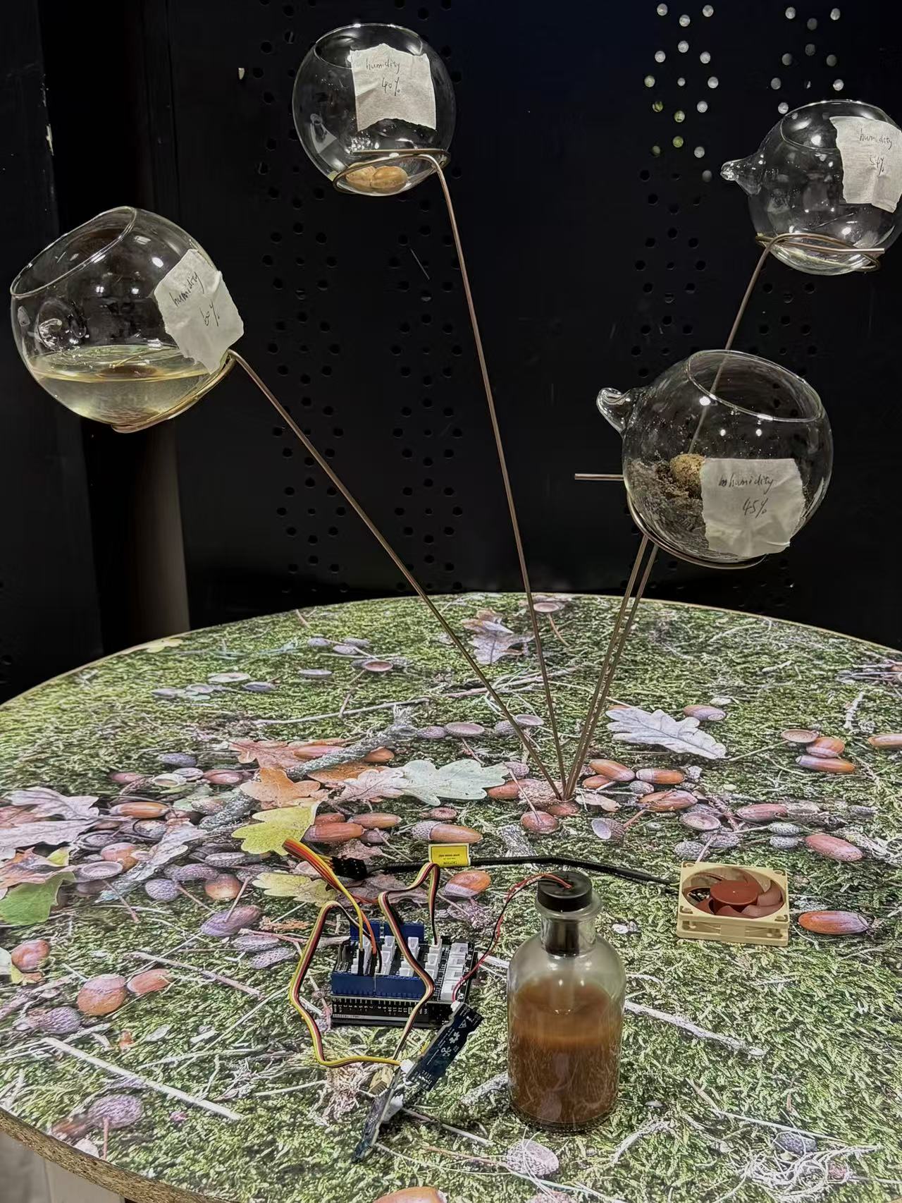 I transformed its metabolism into perceptible material of time. I used humidity sensor data to modulate the intensity of its scent: when moisture decreases, the smell fades; when life is full, the smell is rich. Smell became the material form of time. A cross-species alternative language that allows humans to re-perceive the rhythm of plant life.